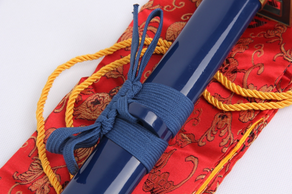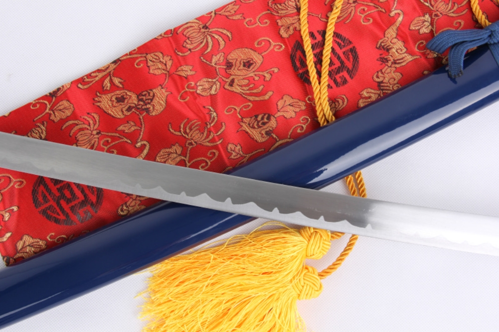 Acélpengével készített díszkard, fa hüvellyel, fémötvözetből készült tsubával. A képen látható kardzsák dekoráció, de külön megvásárolható, ára: 4.000 Ft.
