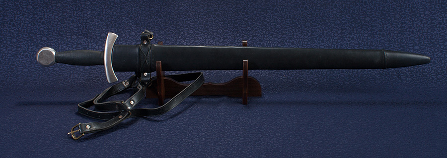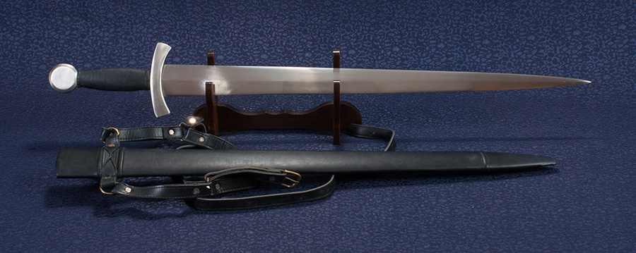 A középkori kardmásolat pengéje kézzel kovácsolt rugóacél, mely rombusz keresztmetszetű. A kardhegy felé elkeskenyedő penge alkalmassá tette láncingek átdöfésére.