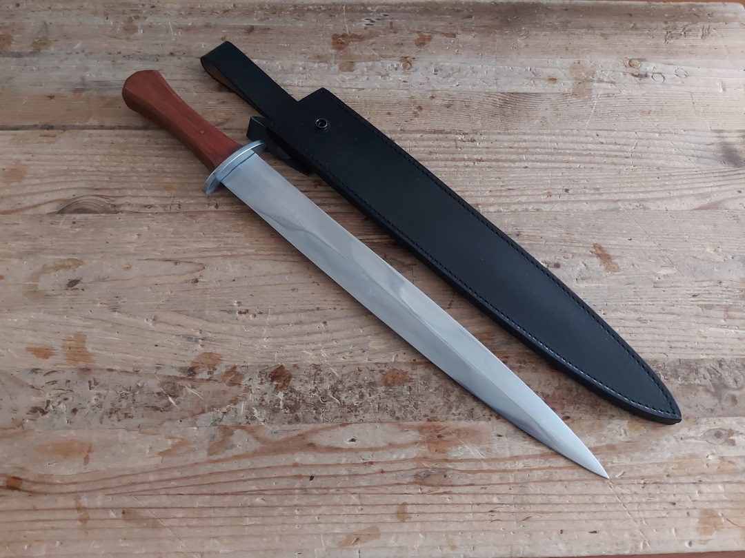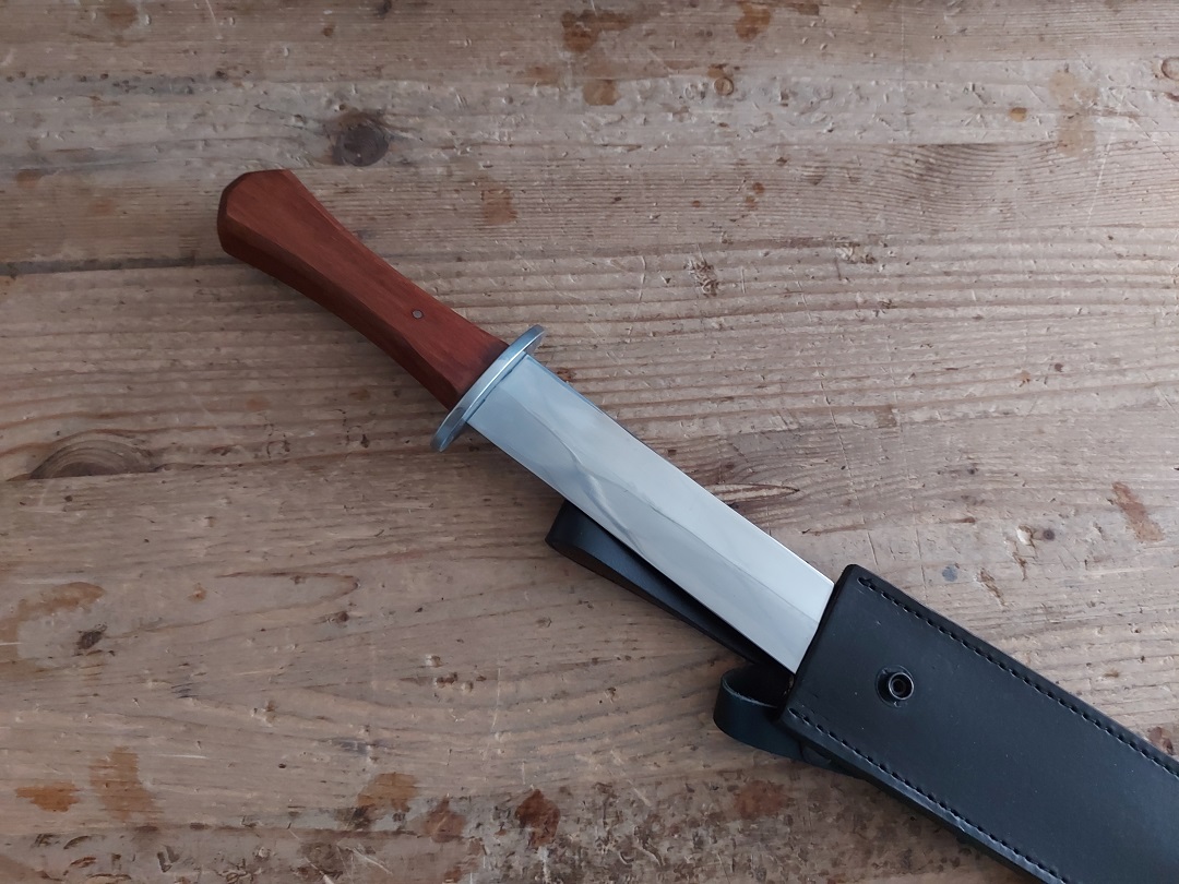 Az "Arkansas fogpiszkálót" James Black, a Bowie-kések továbbfejlesztője találta fel a 19. században. Ezt az egyenes pengéjű nehéz tőrt döfésre és vágásra használták. (Az ár tartalmazza a varott bőrhüvelyt is.)