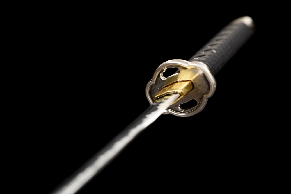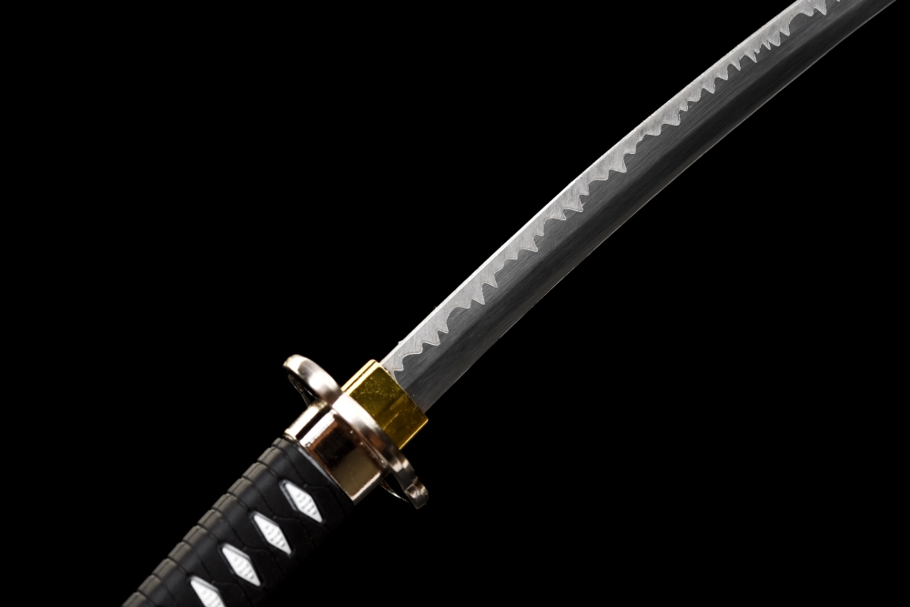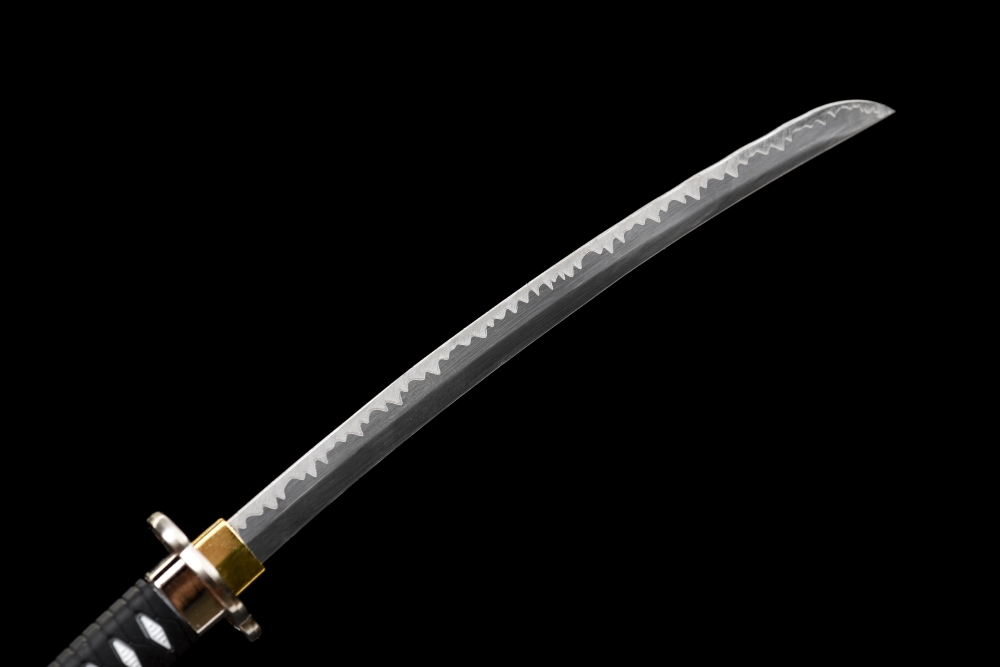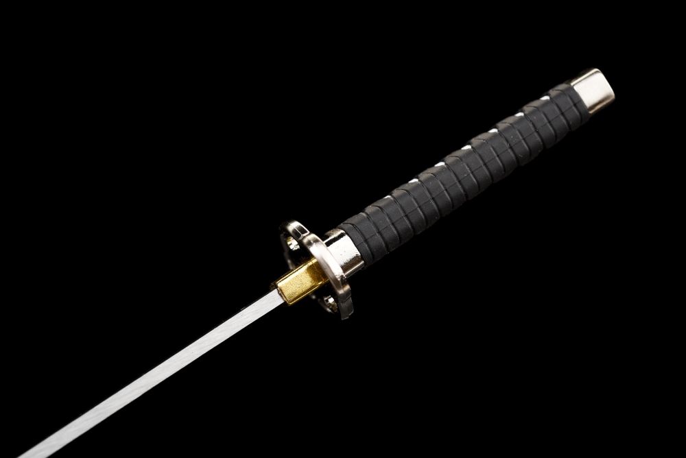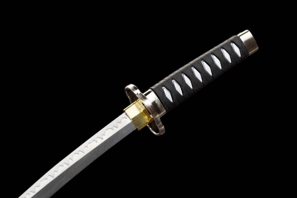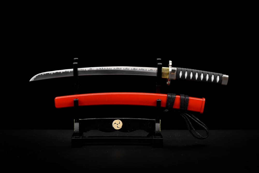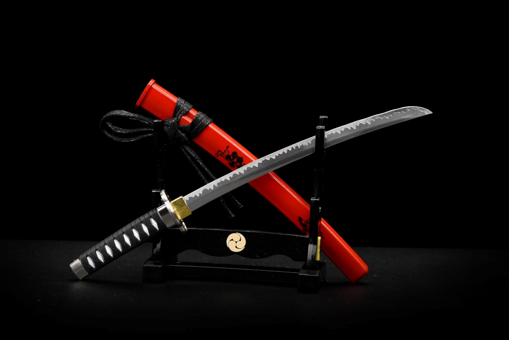 Rozsdamentes acél pengével készített levélbontó katana. A tsuba anyaga cink-alumínium öntvény, a markolat fekete, míg a hüvely pirosra festett műanyag.