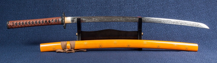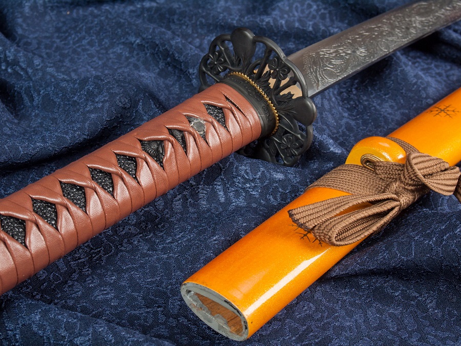 A szamurájkard élezett pengéje 1045 típusú szénacél, savmaratott díszítésű.
