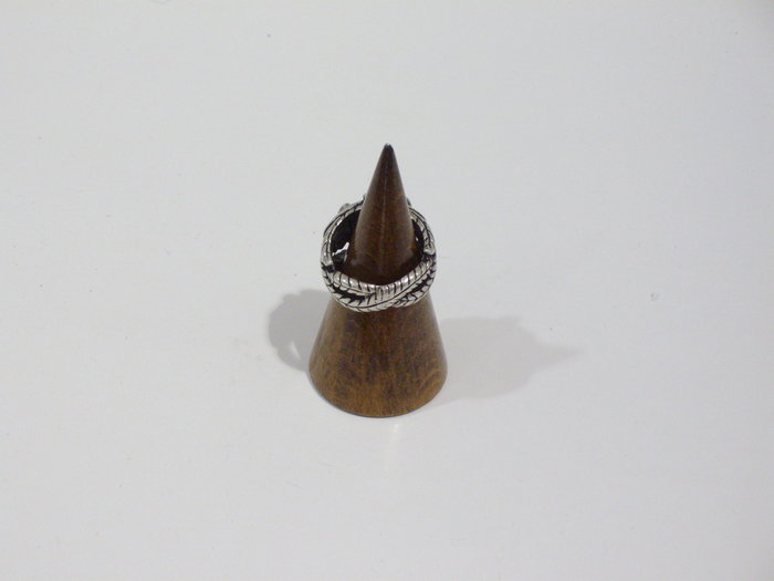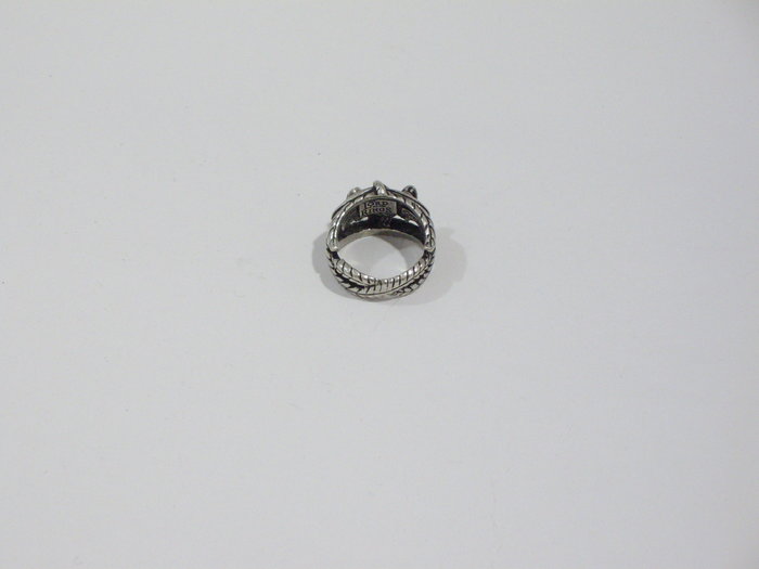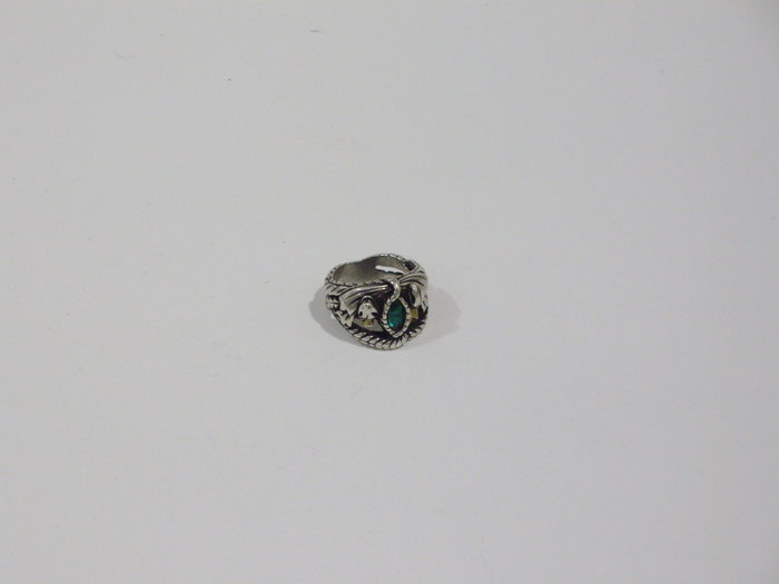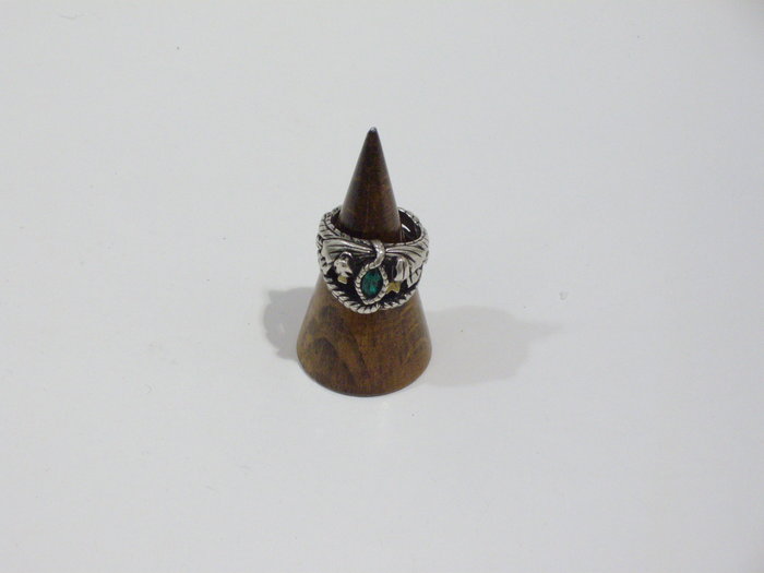 Antiallergén fémötvözet antikolt ezüstözéssel. A két kígyófej aranyozott. A kő festett Swarovski kristály.