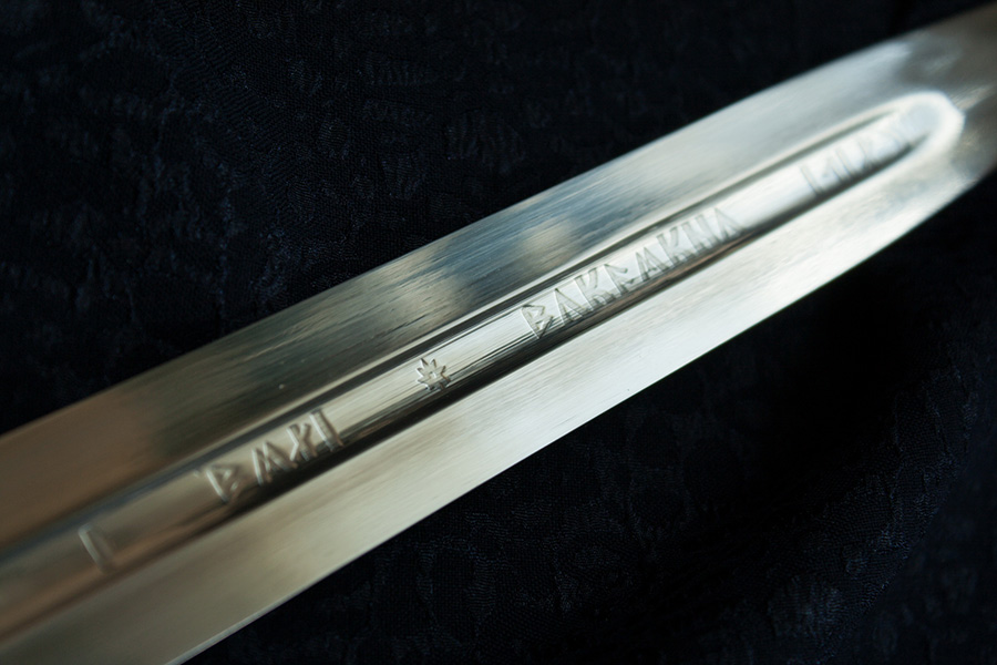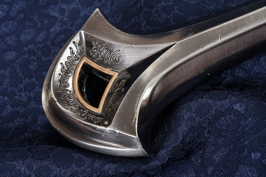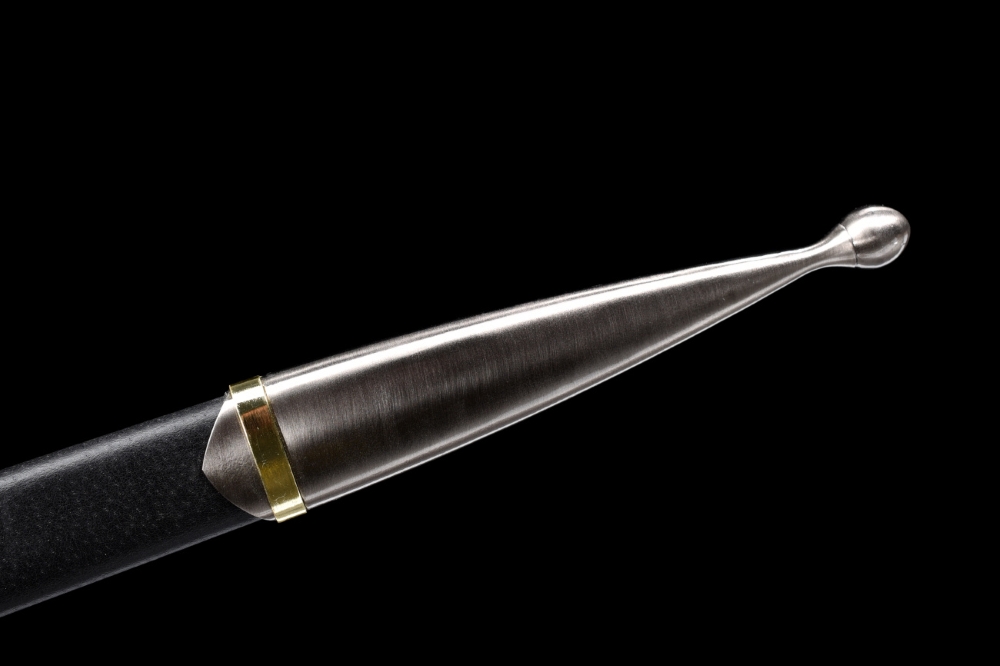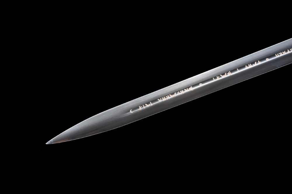 A kétkezes kard vércsatornával ellátott, rozsdamentes acélpengével és bőrözött fa hüvellyel készül, súlya 2550 gramm.