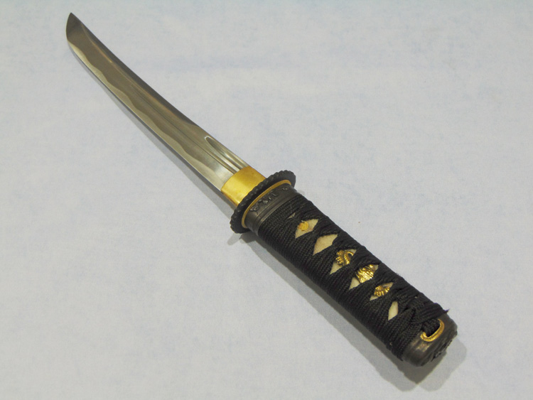 1045 típusú szénacélból kovácsolt (Maru), vércsatornával ellátott, élezett japán tőr.
