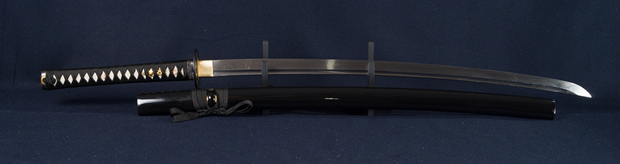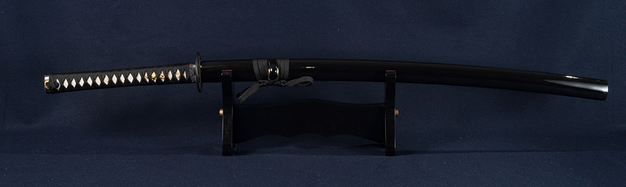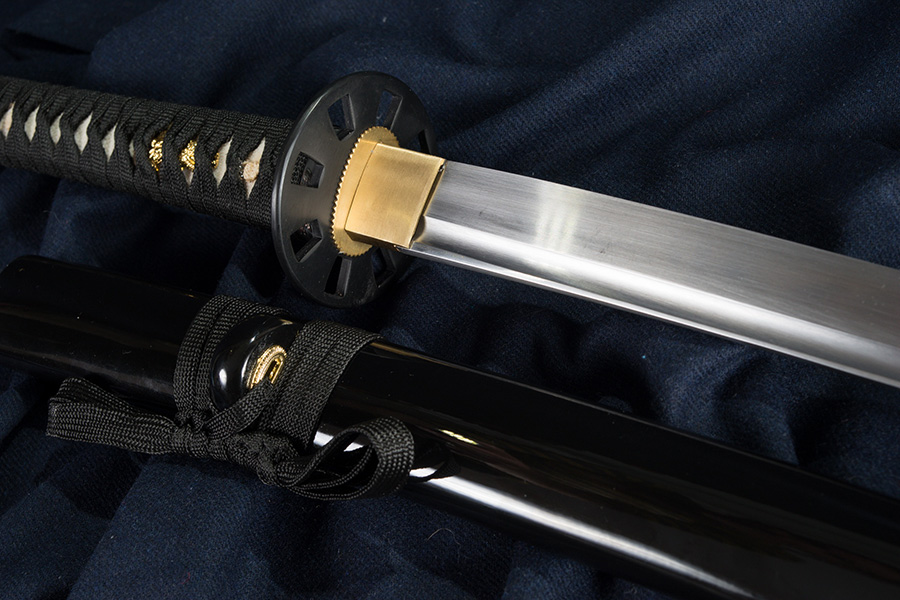 1045 típusú acélból kovácsolt katana, vércsatornával könnyítve. A gyakorlókard élezett, de vágógyakorlatra nem alkalmas!