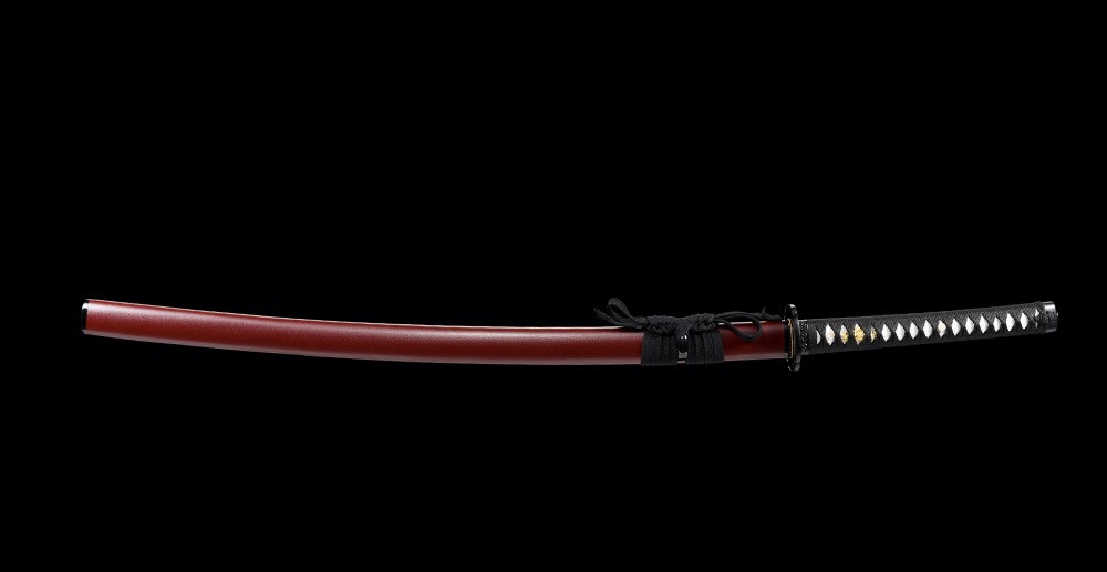 Kézzel kovácsolt, szénacél pengéjű kard vércsatornával könnyítve.
