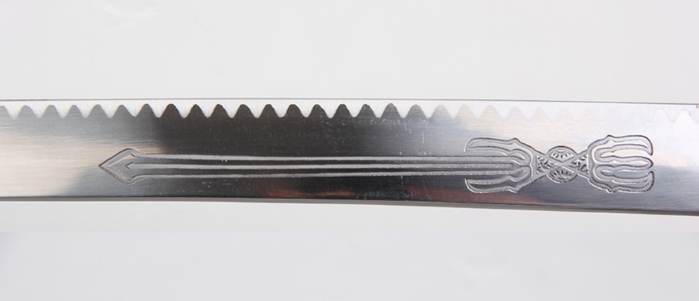 A katana 1045 típusú szánacélból kovácsolt, vércsatorna nélküli, gravírozott pengéje élezett. A kard vágógyakorlatokra nem alkalmas!