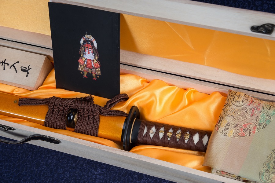 1095 típusú acélpenge hagyományos, agyagos kitakarással edzve, valódi hamonnal. A kézzel élezett és polírozott katana borotvaéles, vágógyakorlatra (tameshigiri) alkalmas! A képen látható díszdoboz, selyem kardzsák, kardállvány, tisztítószett benne van az árban.