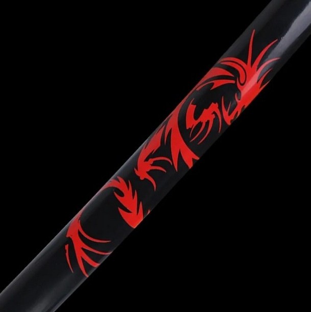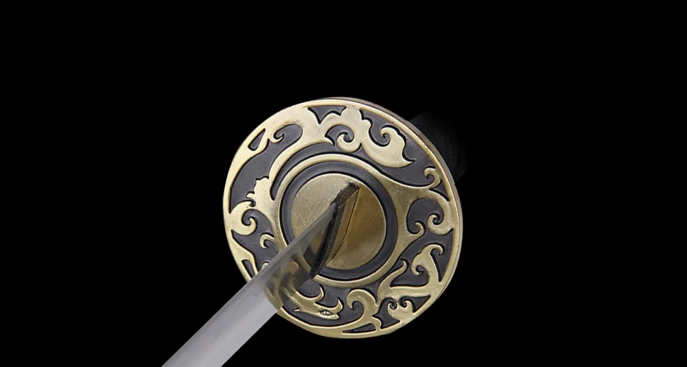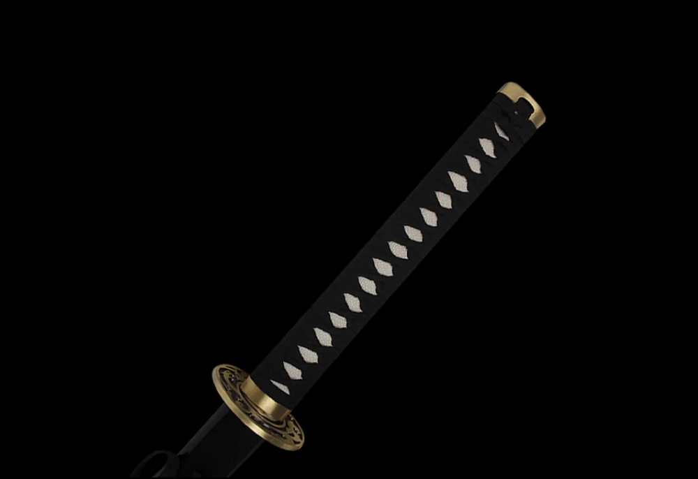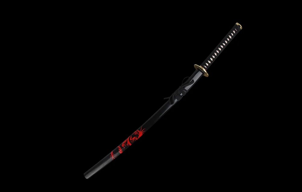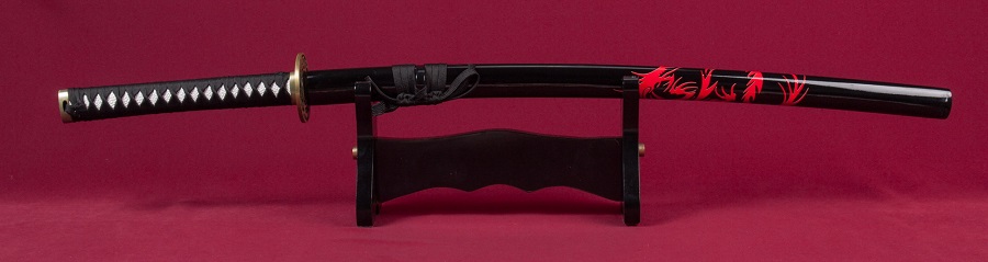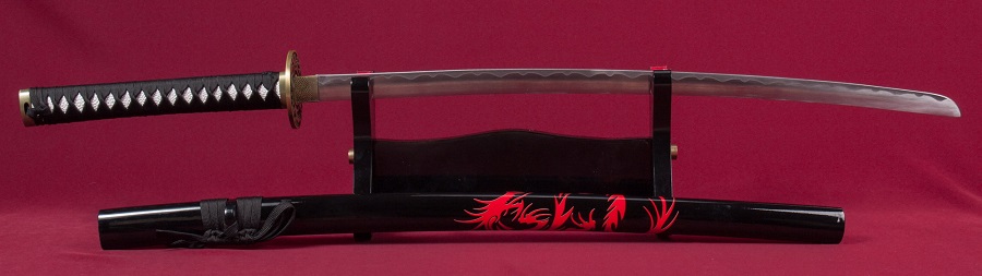 Szénacél pengével készített díszkard. A tsuba anyaga fémötvözet, a kardhüvely lakkozott keményfa.