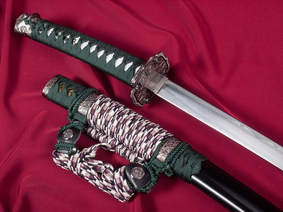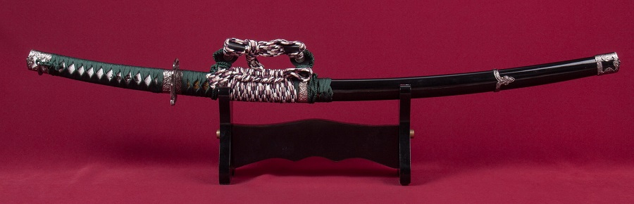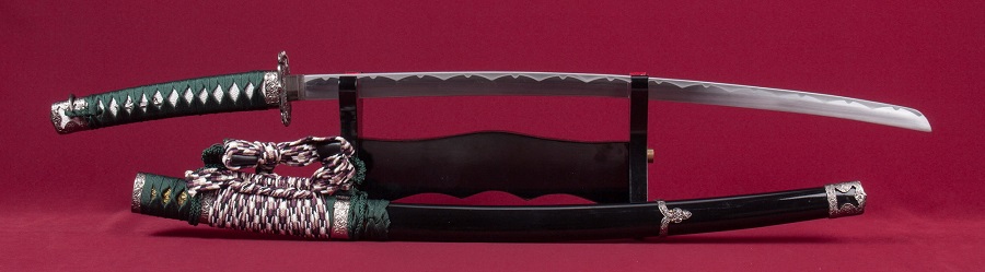 A díszkard szénacélból készült, a díszes tsuba anyaga fémötvözet, a kardhüvely (saya) anyaga fa.