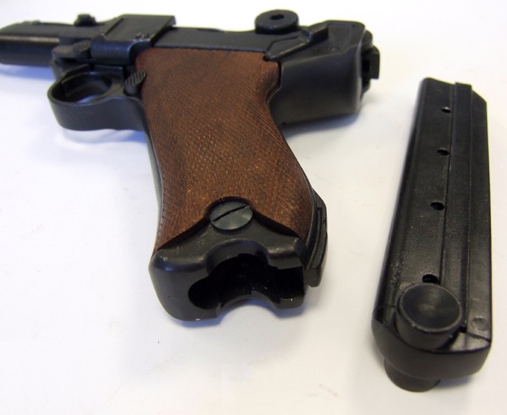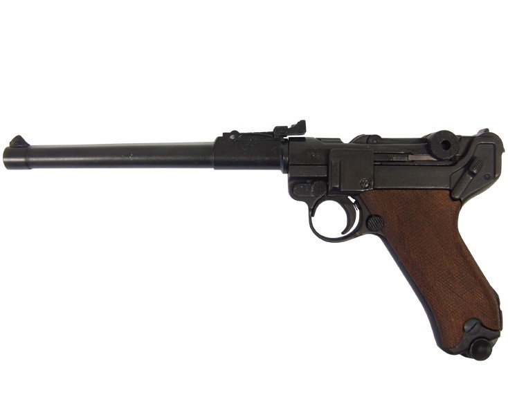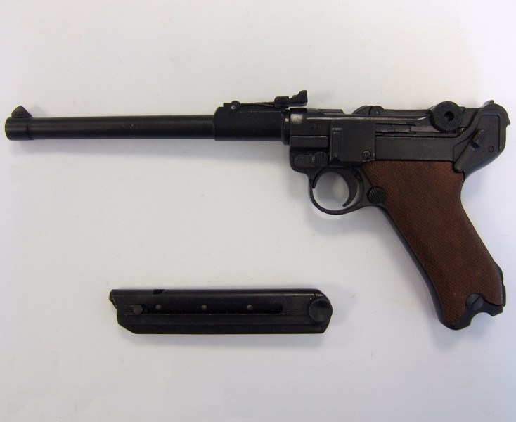 Mindkét világháborúban használt, 1917-től gyártott német pisztoly replikája. Fa markolattal, működő mechanikával és kivehető tárral készül.