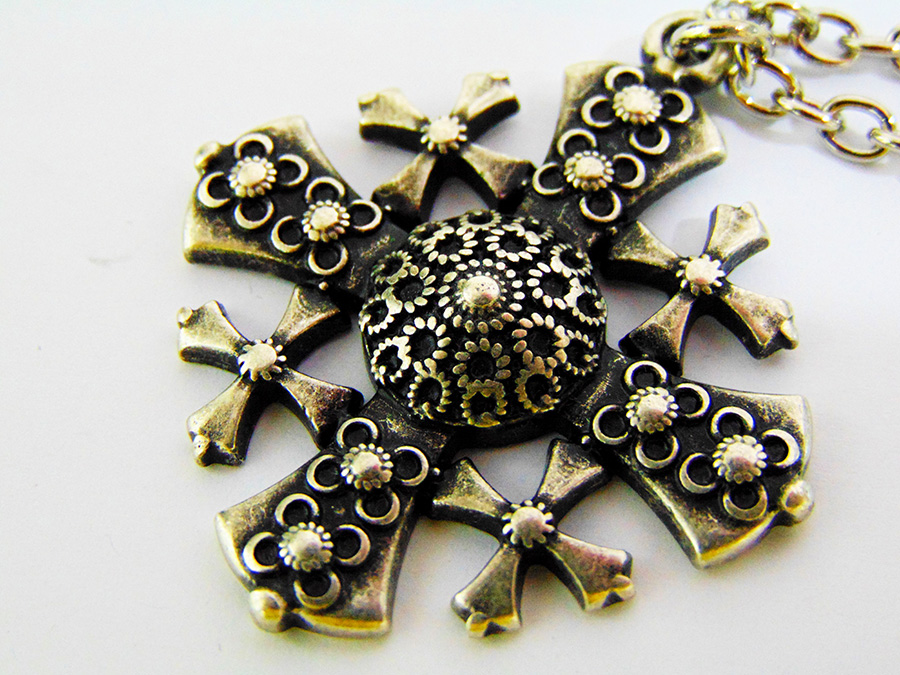 A medál és a lánc anyaga antiallergén fémötvözet. antikolt ezüstbevonattal. Tanúsítvánnyal, díszdobozban árusítjuk.