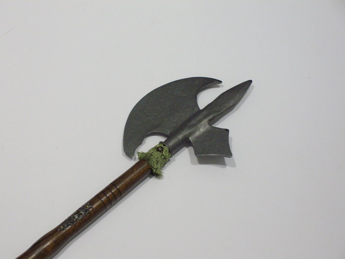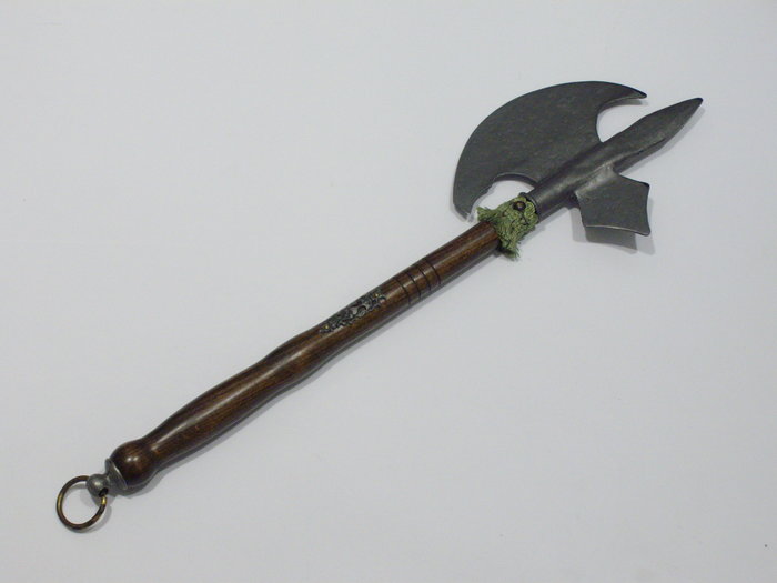 A díszbárd miniatúra anyaga tölgyfa és fémötvözet.