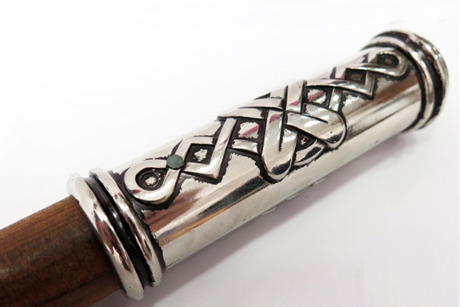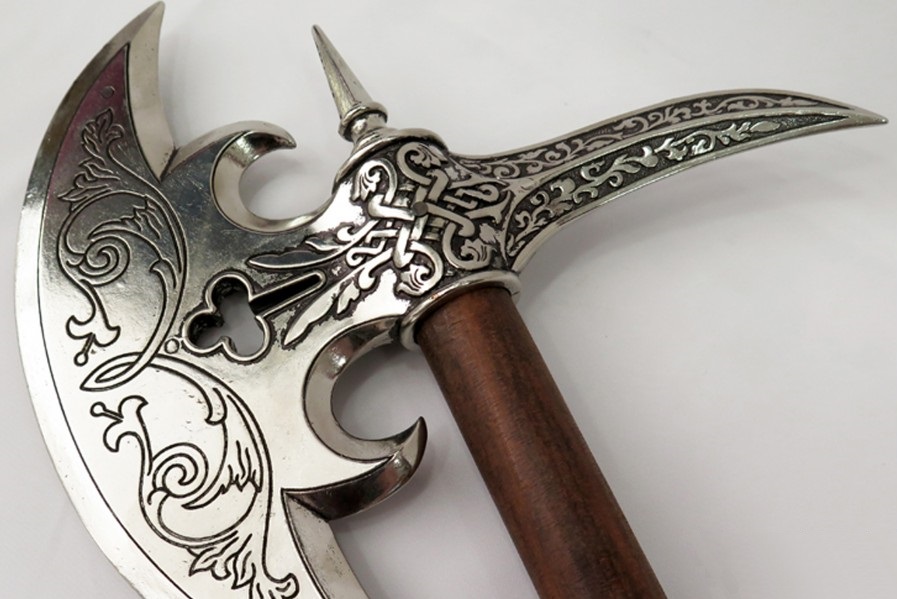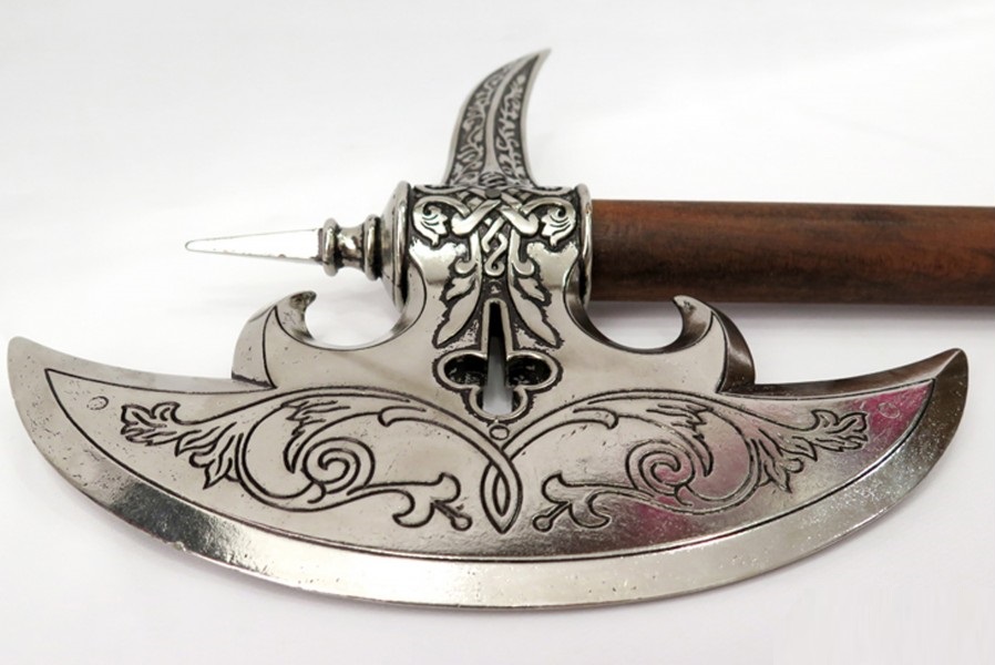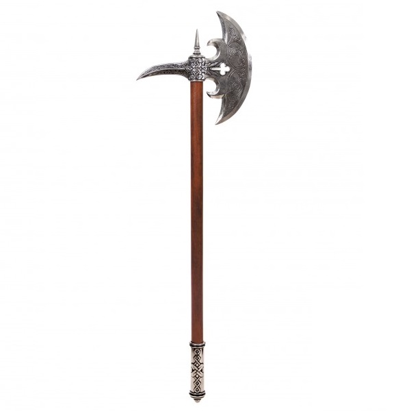 Fából és fémötvözetből készített díszbárd, súlya 945 gramm.