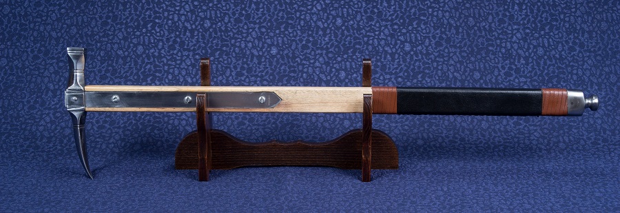 A privát gyűjteményből származó fegyver másolatának anyaga acél és fa, a markolat bőrrel bevont.