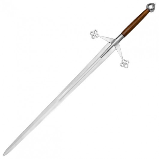 A Claymore ("claidheamh mór") a klasszikus kétkezes középkori kard skót megfelelője. Az általunk forgalmazott edzett kard pengéje EN45 típusú szénacél, a markolat fa, a szerelék rozsdamentes acél.
