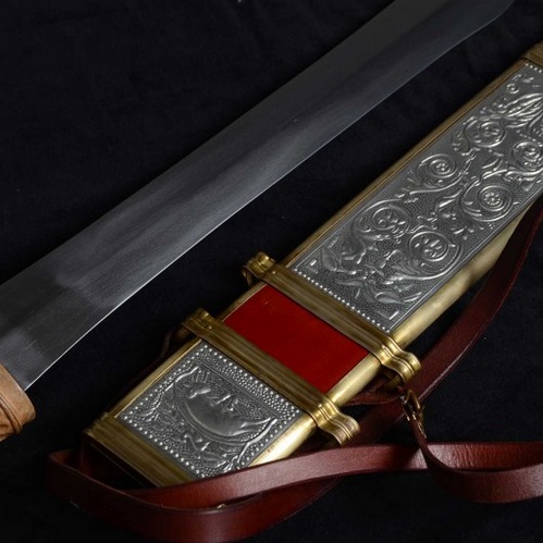 A másolat pengéje EN45 típusú szénacélból kovácsolt, a markolat csont utánzatú műgyantából készült. A kardhüvely bőrrel bevont keményfa, melyet az eredetivel megegyező mintájú domborított fémlemez burkol. A kardot hagyományőrzőknek és gyűjtőknek egyaránt ajánljuk.
