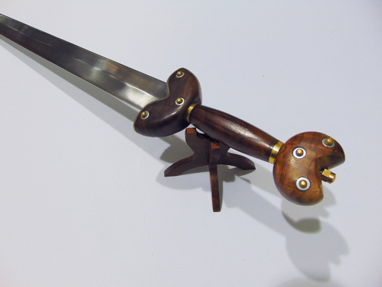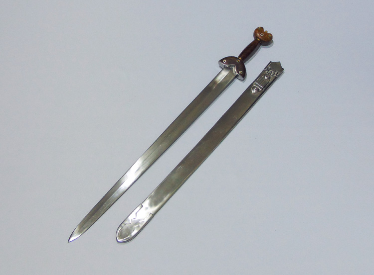 A sírlelet alapján elkészült kard pengéje edzett acélból, markolata fából van. A kardhüvely anyaga fém.