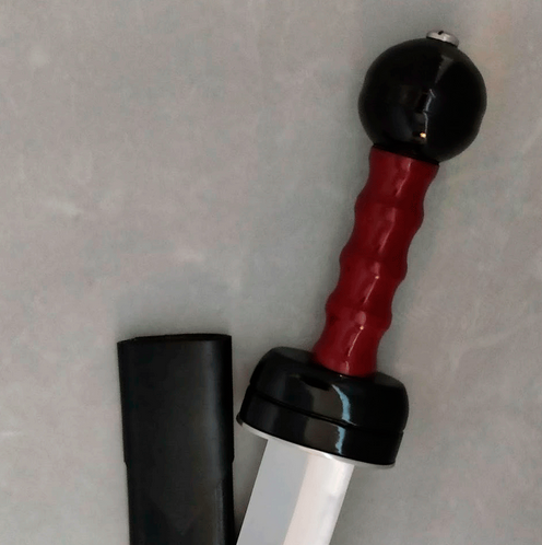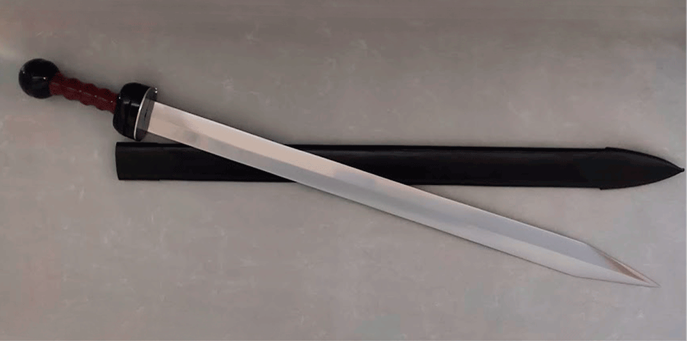 A gladius magas széntartalmú acélból készül. A penge hossza 76 cm, súlya 1400 gramm. A kardmarkolat anyaga festett fa.