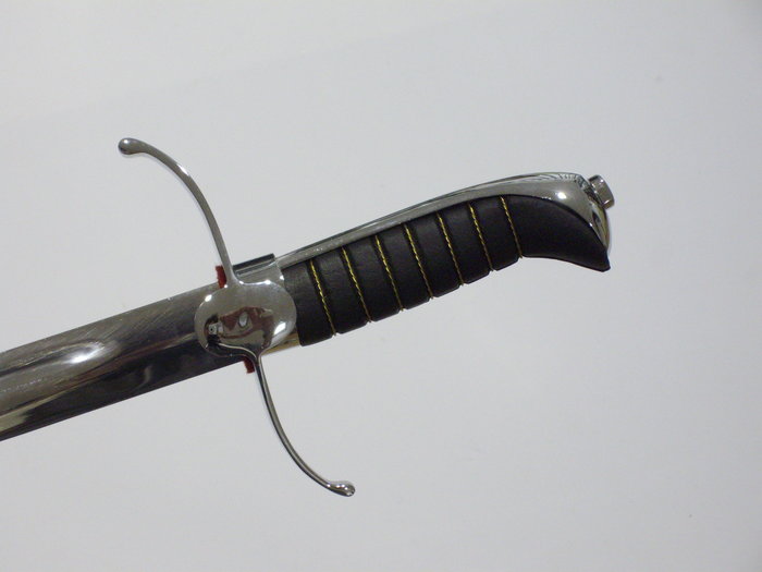 A penge 51CRW-4-es acélból készült vércsatornával. A szerelékek krómozottak, a hüvely bőrrel bevont.