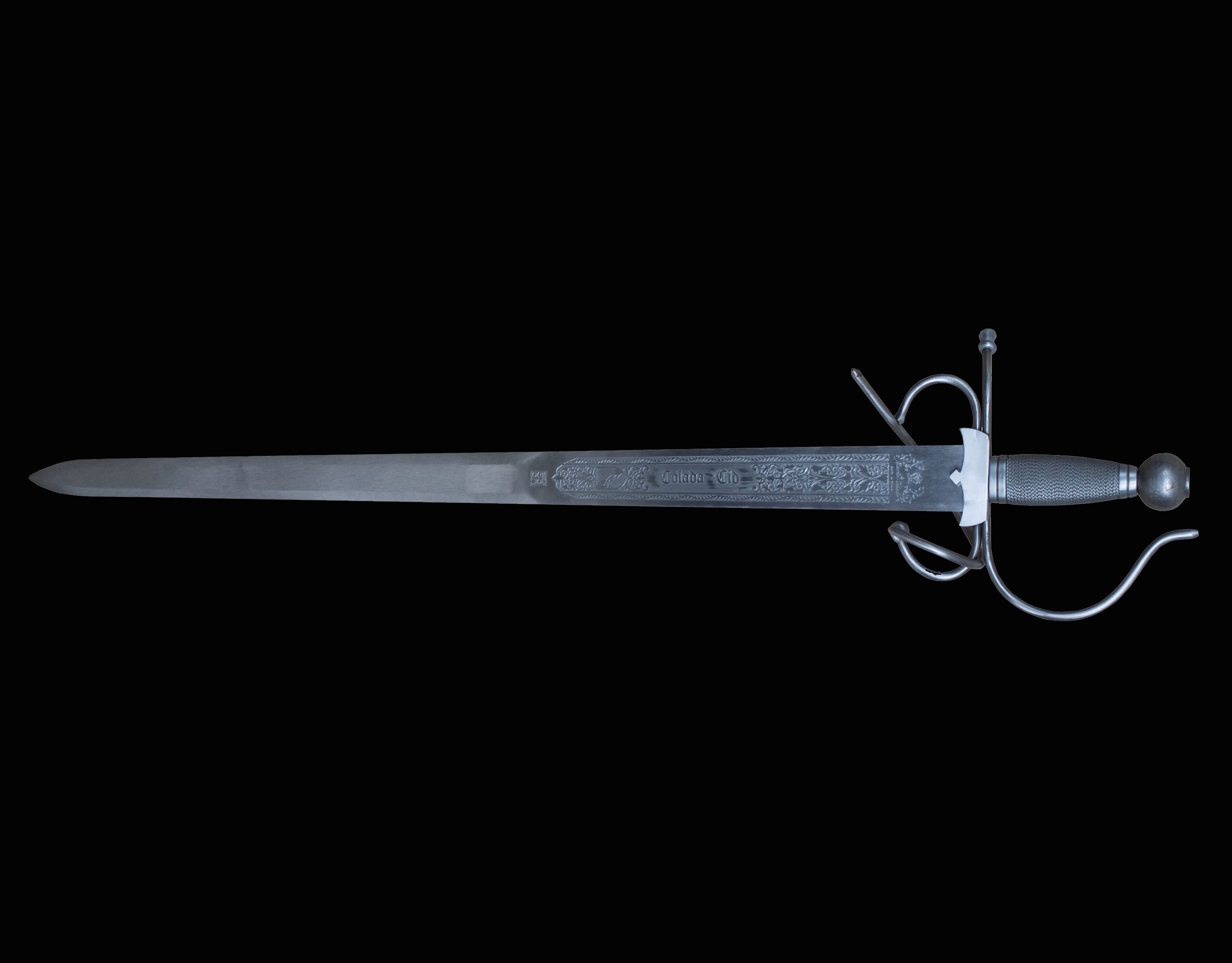 Kovácsolt díszkard toledói acél pengével (Marto), a markolat és keresztvas fémötvözet. A Spanyol nemzeti hős Rodrigo Díaz de Vivar kardja. Aki többet szeretne tudni a kardról (Wiki) vagy El Cidről (Wiki)