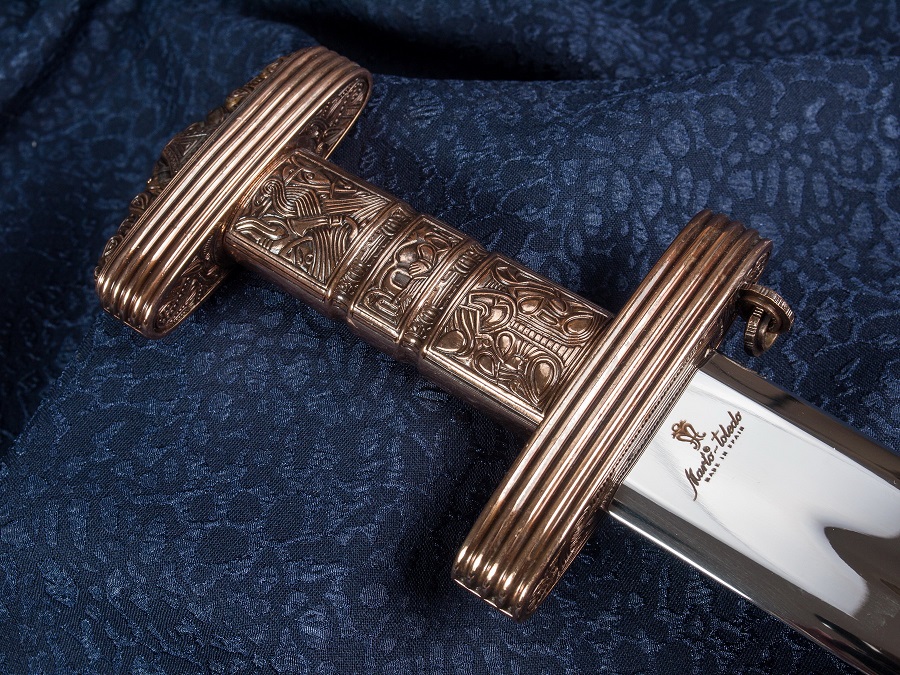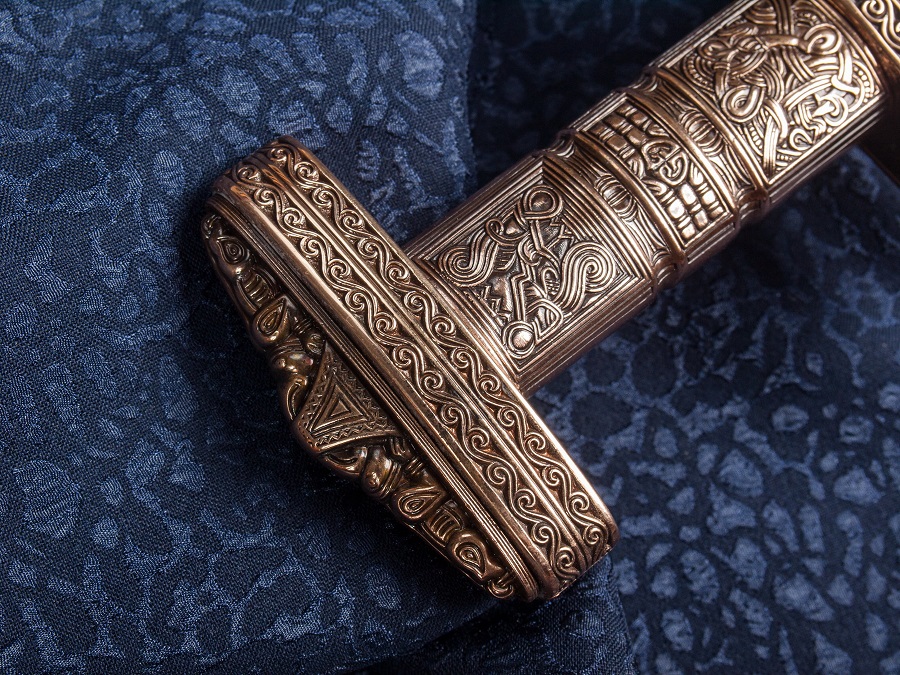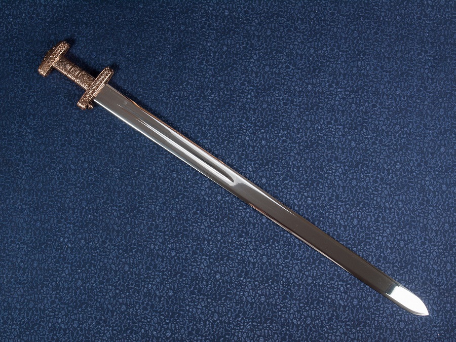 VIII. századi viking kardmásolat a Marto cég "Legendary swords" kollekcióból. A kard markolata jellegzetes viking motívumokkal díszített.