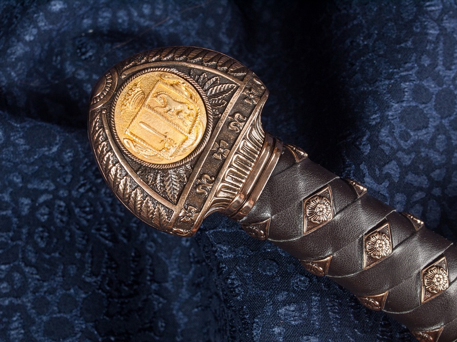 A penge toledói acélból készült. Gazdagon díszített a markolata, keresztvas aranyozással.