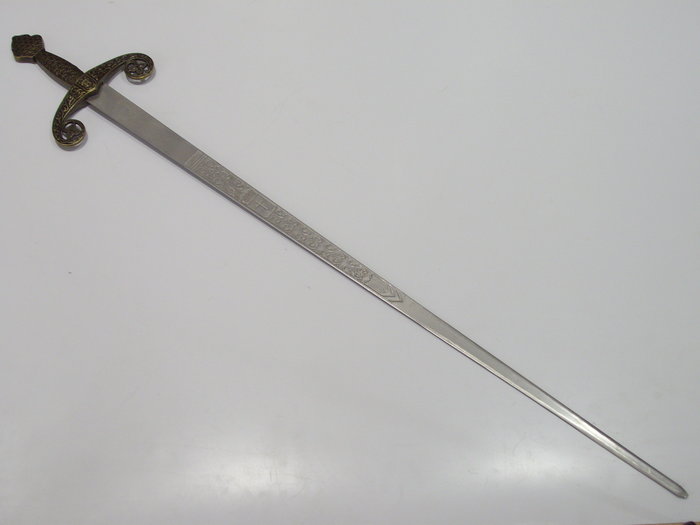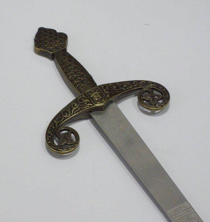 Díszkard. A penge acél. A keresztvas, a markolat antikolt bronz.