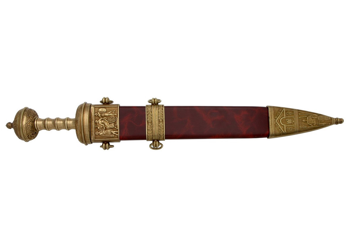 A II. pun háború után terjedt el ez a hispán mintájú rövid, kétélű kard, amelynek a pengéje széles és egyenes. Ezért főként szúrásra és hárításra volt jó, vágásra kevésbé. A római közkatonák a jobb oldalukon hordták, mivel a kard rövidsége lehetővé tette, hogy azonos oldali kézzel is könnyen előránthassák.