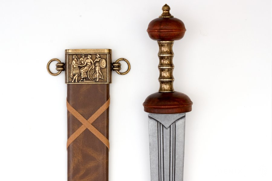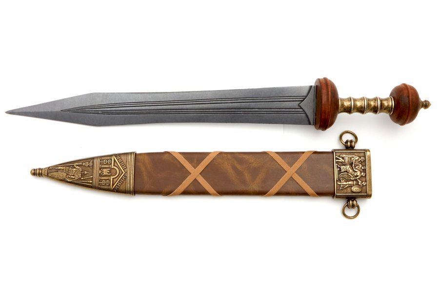 A II. pun háború után terjedt el ez a hispán mintájú rövid, kétélű kard, amelynek a pengéje széles és egyenes. Ezért főként szúrásra és hárításra volt jó, vágásra kevésbé. A római közkatonák a jobb oldalukon hordták, mivel a kard rövidsége lehetővé tette, hogy azonos oldali kézzel is könnyen előránthassák.
