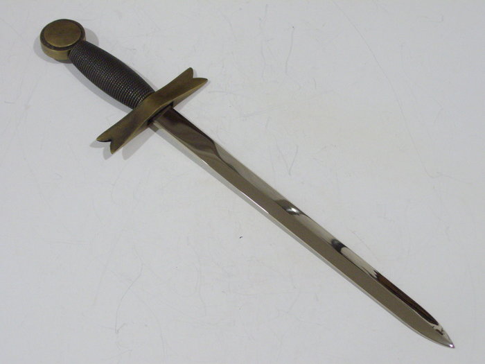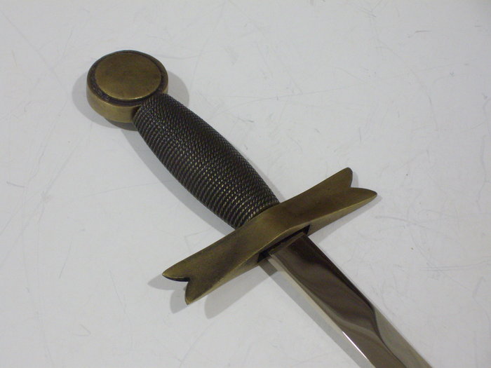 Toledói acélból készített dísztőr. A markolatgomb és a keresztvas antikolt rézből van. A markolat sodronyozott technikával készült antikolt réz.