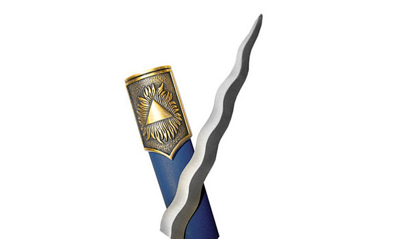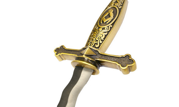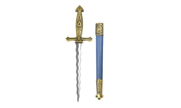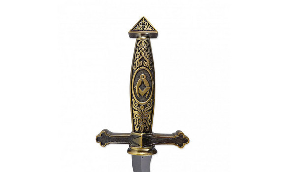 Szabadkőműves szimbólumokkal díszített dísztőr acélpengével. A markolat, illetve a tőrhüvely díszítése fémötvözetből készült.