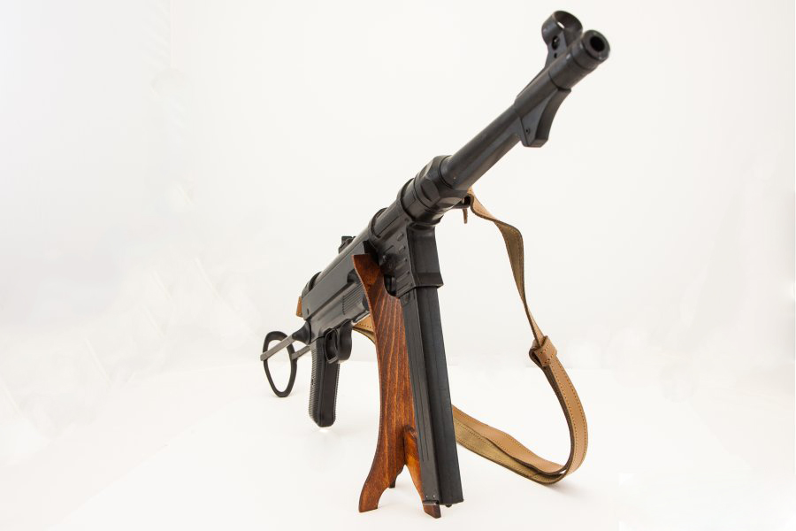 Asztali fegyvertartó, egyrészes. Anyaga fa.