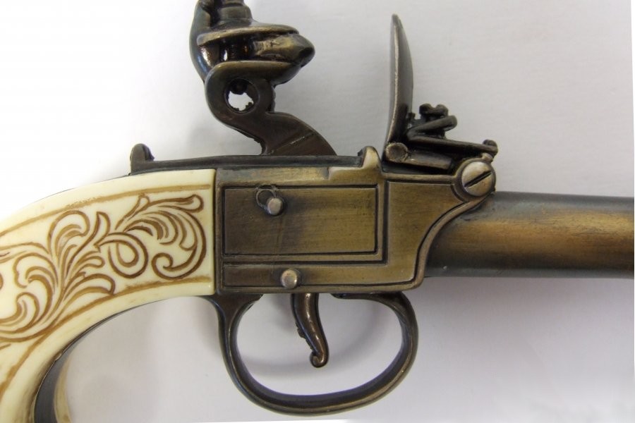 Az eredeti fegyvert Londonban gyártották, a XVIII. században. A replika súlya 180 g.