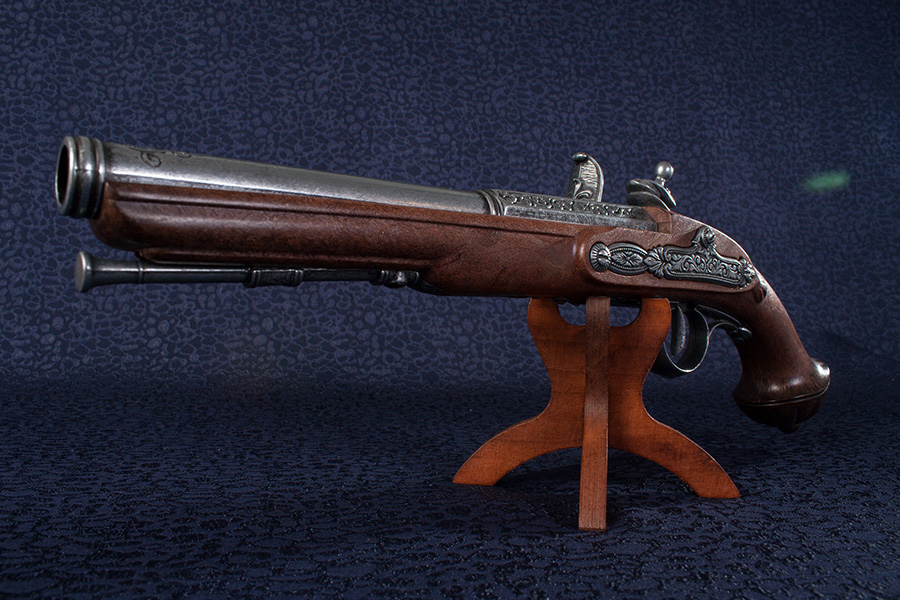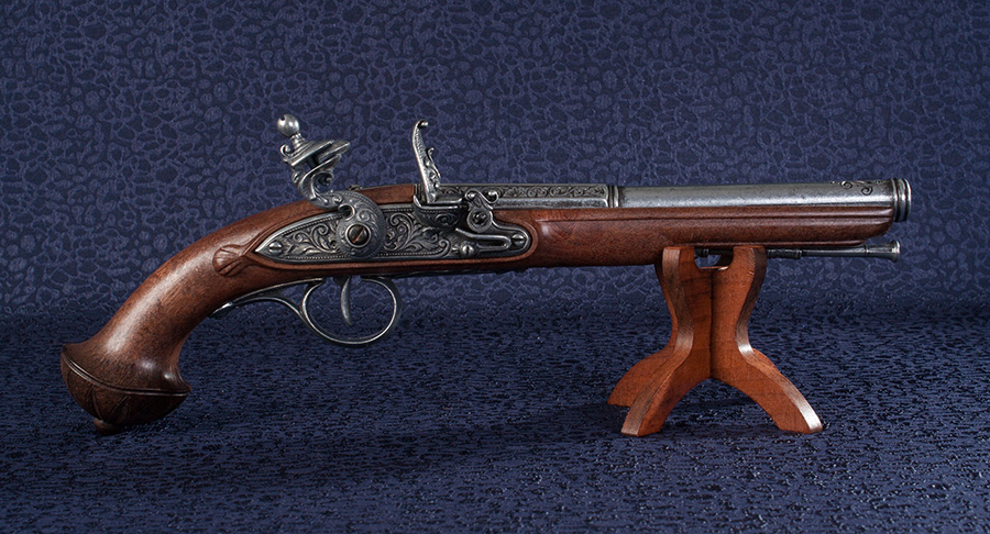 XVIII. századi elöltöltő pisztoly másolata működő mechanikával.