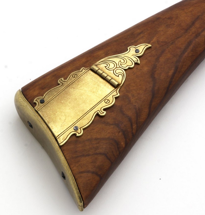 A díszfegyver anyaga fa és fémötvözet, súlya 1745 gramm.