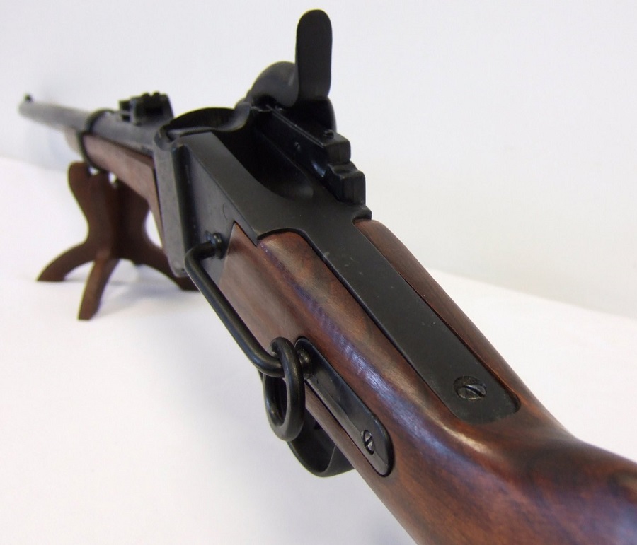 Az egylövetű, csappantyús elsütőszerkezettel rendelkező puskát az Unió hadserege használta az amerikai polgárháborúban. A működő mechanikájú másolat anyaga fa és fémötvözet.