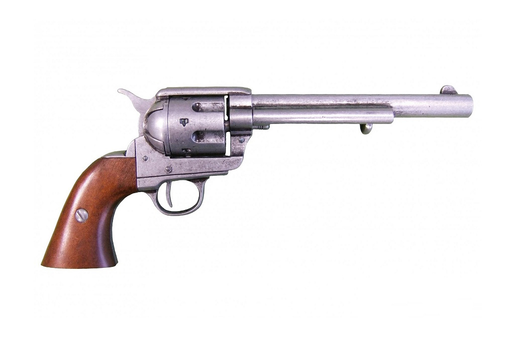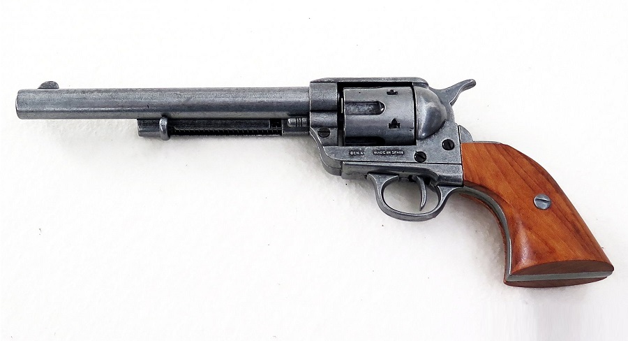 45-ös kaliberű, hatlövetű fegyver másolata, melyet az indiánokkal folytatott háborúk végéig használtak. Anyaga fa és fémötvözet.
