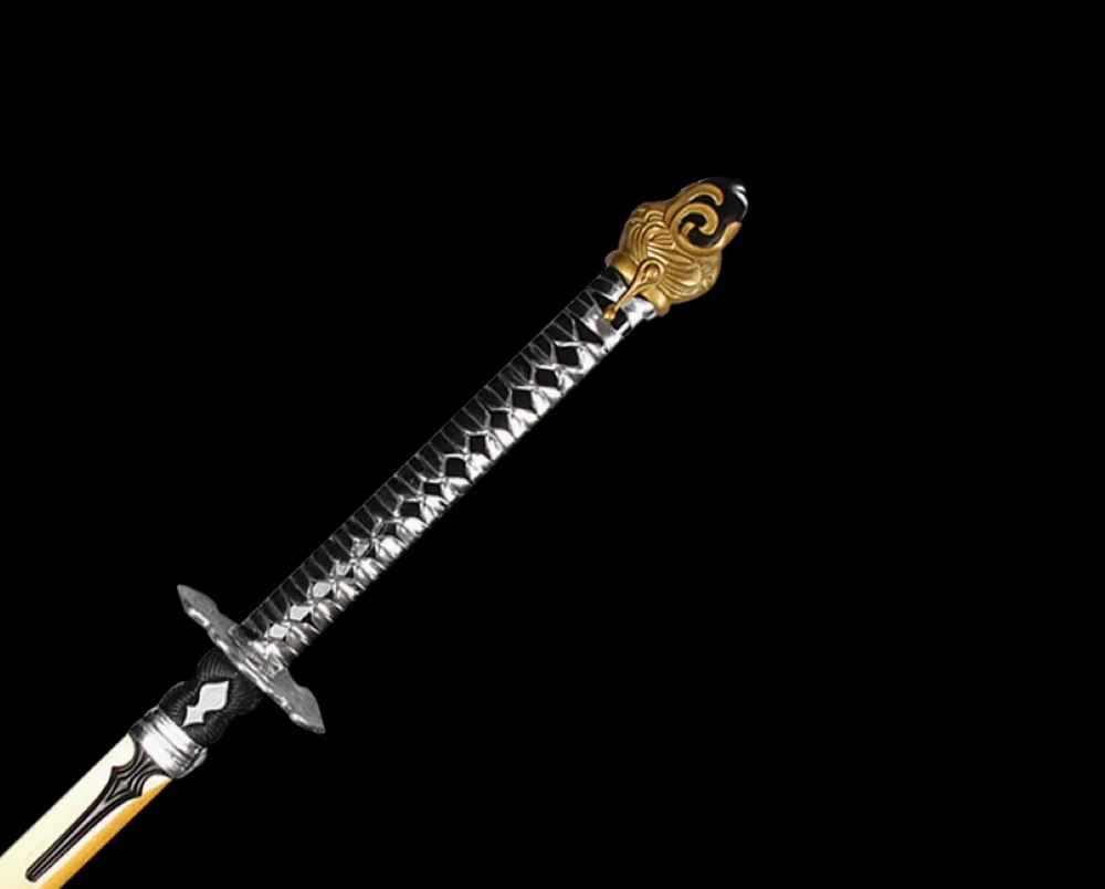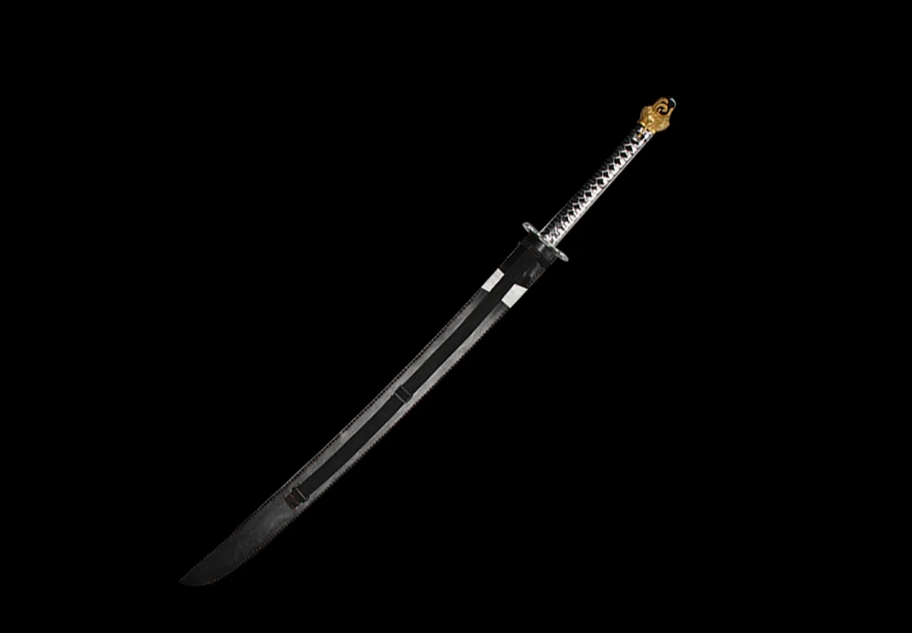 Festett acélpengével készített díszkard, bőr kardhüvellyel.