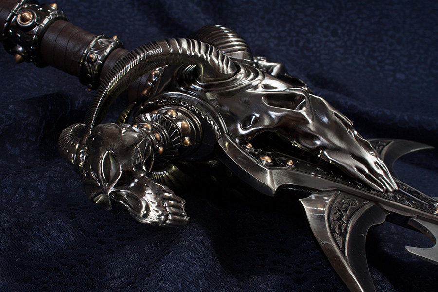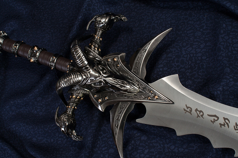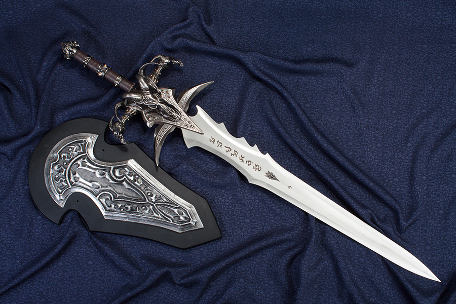 A Blizzard Stúdió számítógépes játéka, a nagysikerű World of Warcraft sorozatban szereplő Lidérc Király (Lich King) kardjának a másolata. Az aprólékosan díszített kard rozsdamentes acél pengével készül, amely a képen látható fatáblával falra rögzíthető.