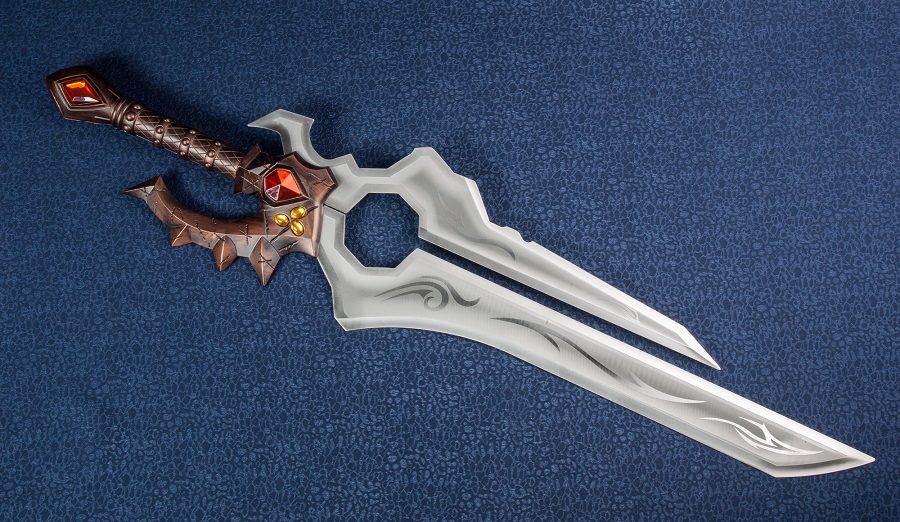 A ketté szedhető díszkard pengéje rozsdamentes acél. Az ár tartalmaz egy fatartót.