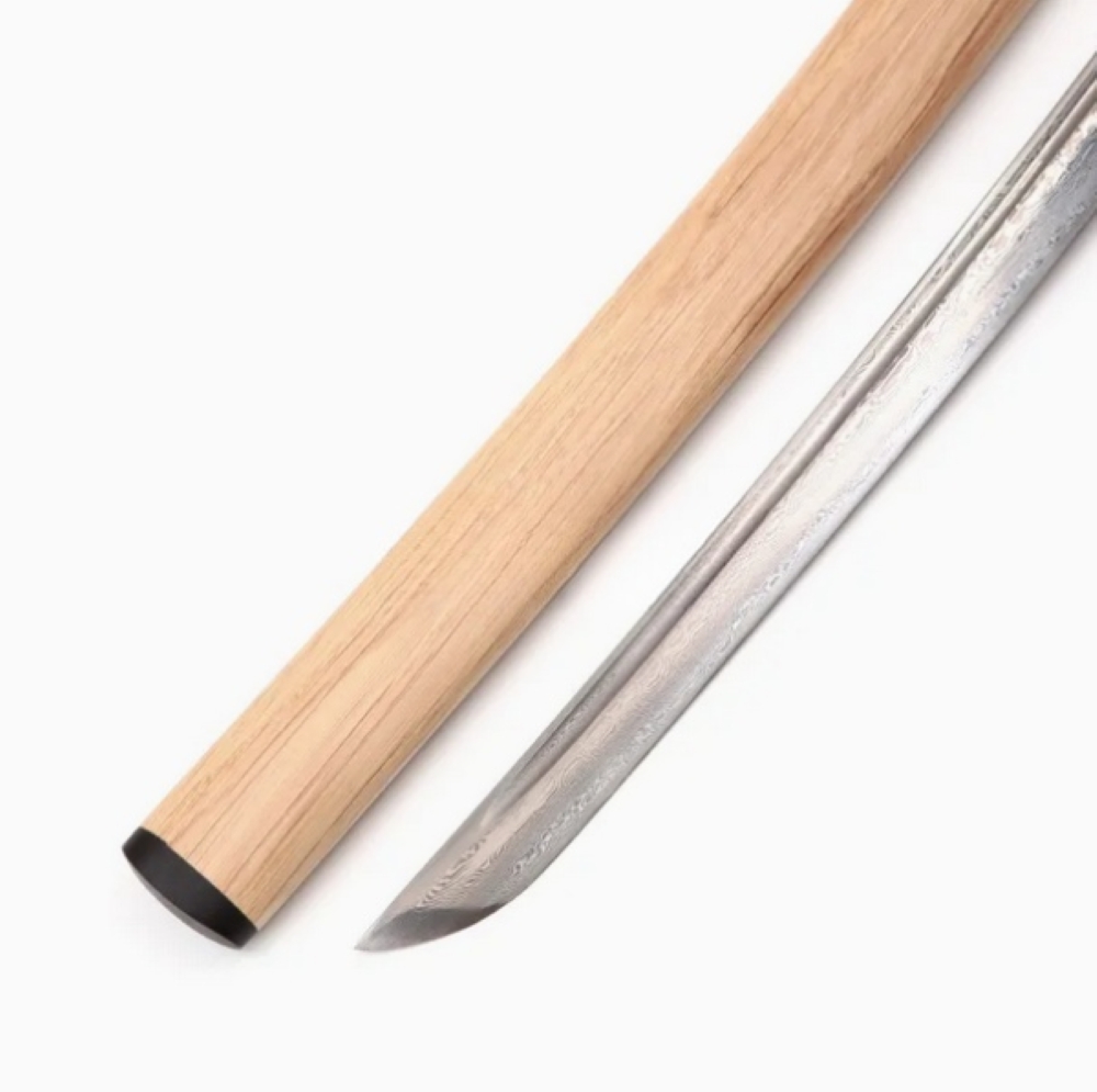 A katana pengéje 1045 típusú szénacélból készült, rétegelt kovácsolással (damaszkolás). A vércsatornával könnyített kardpenge élezett.