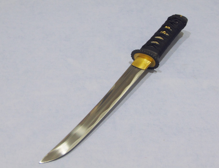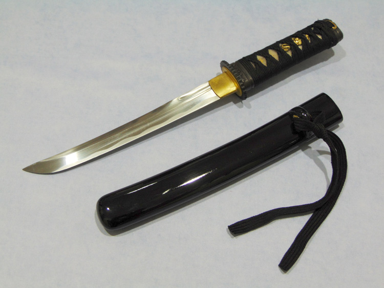 További adatok:- pengehossz: 24 cm- saya: lakkozott fa- tsuba: acél- tsukaito: pamut, alatta rájabőr