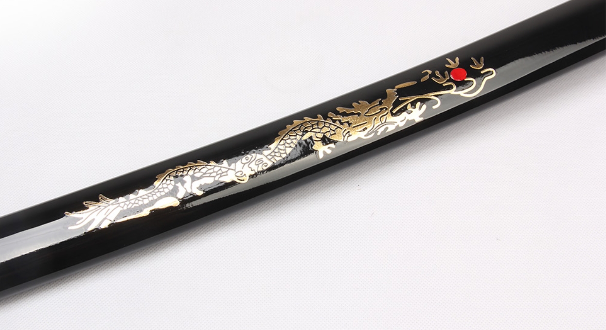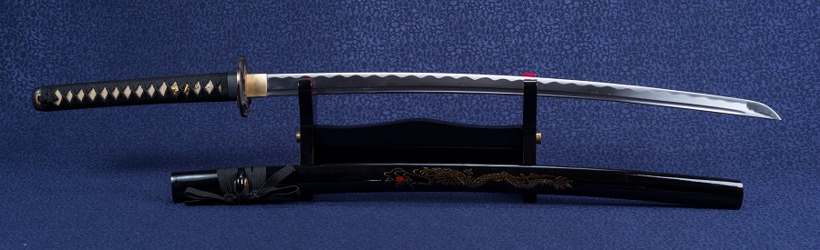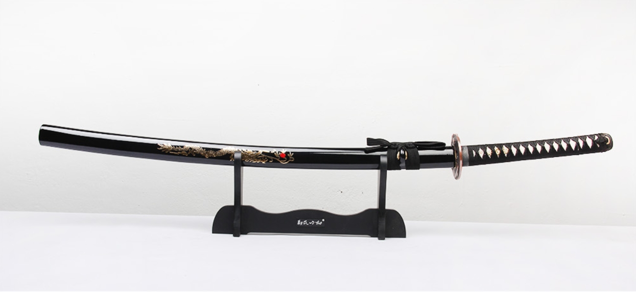 1045 típusú acélból kovácsolt katana, vércsatornával könnyítve. A gyakorlókard élezett, de vágógyakorlatra nem alkalmas!
