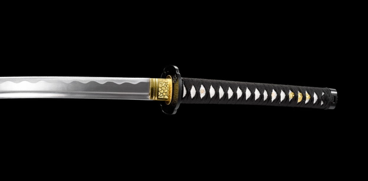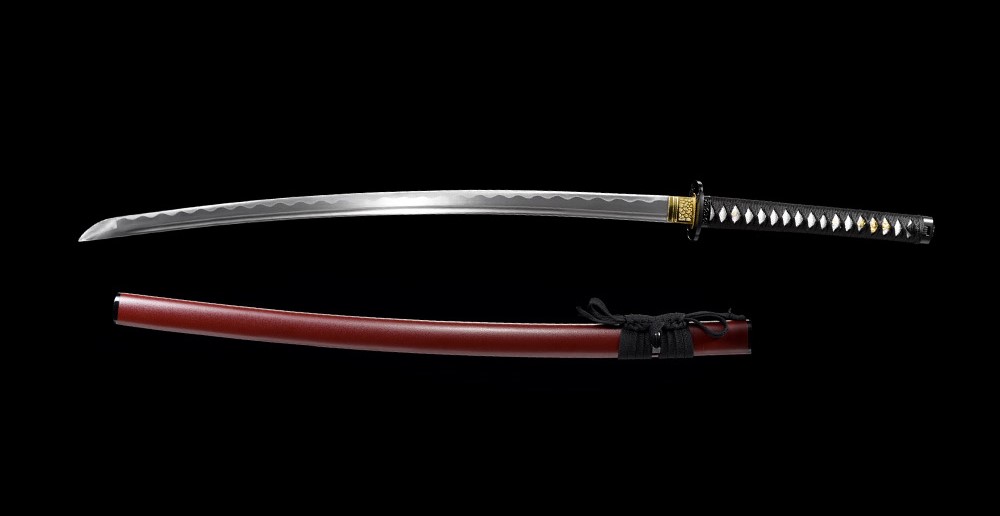 Kézzel kovácsolt, szénacél pengéjű kard vércsatornával könnyítve.