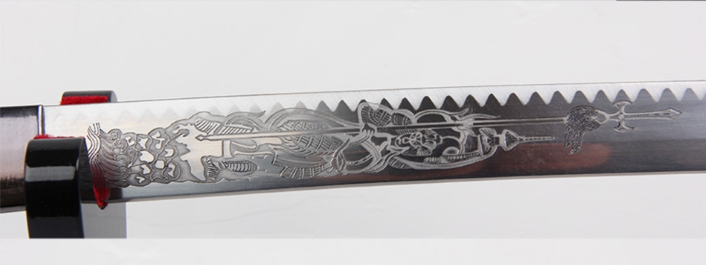 A katana 1045 típusú szánacélból kovácsolt, vércsatorna nélküli, gravírozott pengéje élezett. A kard vágógyakorlatokra nem alkalmas!