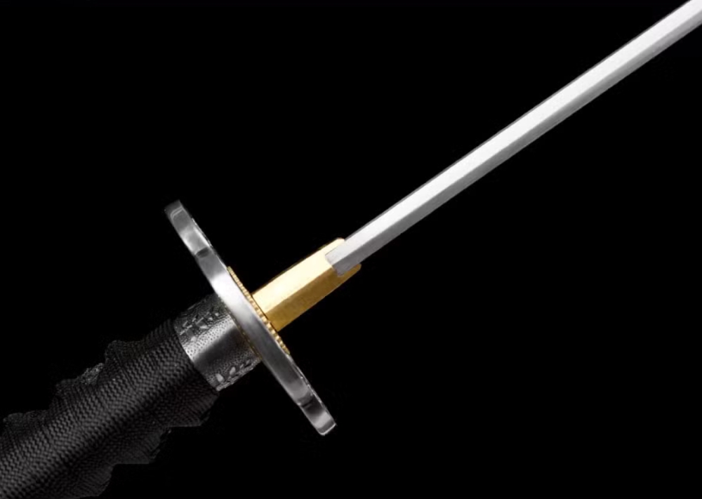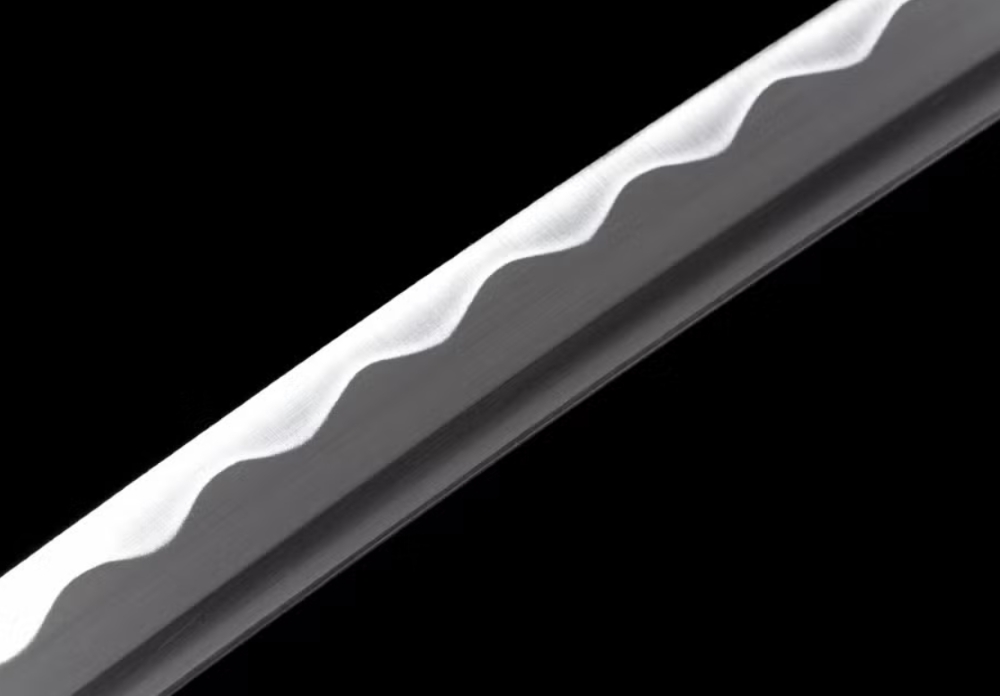 A katana pengéje 1045 típusú szénacélból kovácsolt, vércsatornával könnyített és élezett.