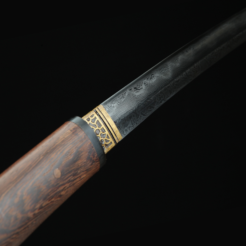Rétegelt kovácsolással (damaszkolás), 1060-as szénacélból, hagyományos agyagos kitakarással edzett, valódi hamonnal készített shirasaya. A kézzel élezett és polírozott penge borotvaéles, vágógyakorlatra (tameshigiri) alkalmas!